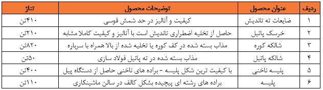 ضایعات موجود و مقدار تقریبی آنها بدین شرح می باشد:
